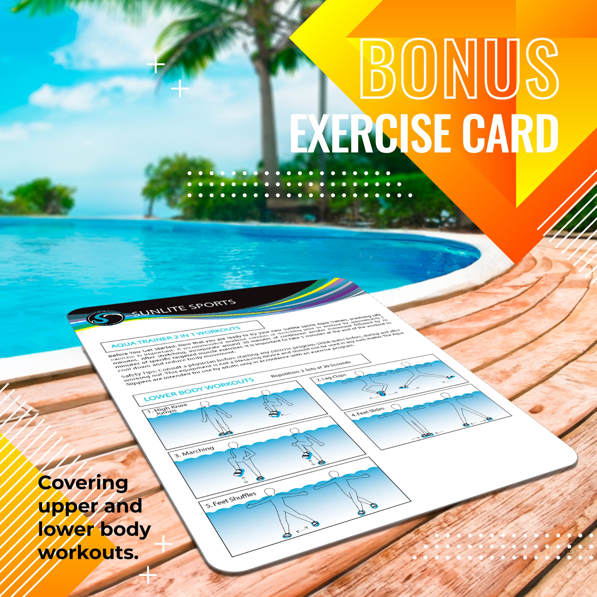 - EXERCISE CARD WITH 10 EXERCISES - Each set of Aqua Trainers comes with an exercise card featuring 10 carefully curated exercises. These exercises are specifically designed to maximize the benefits of using Aqua Trainers and provide a variety of workout options to suit different fitness levels and goals.