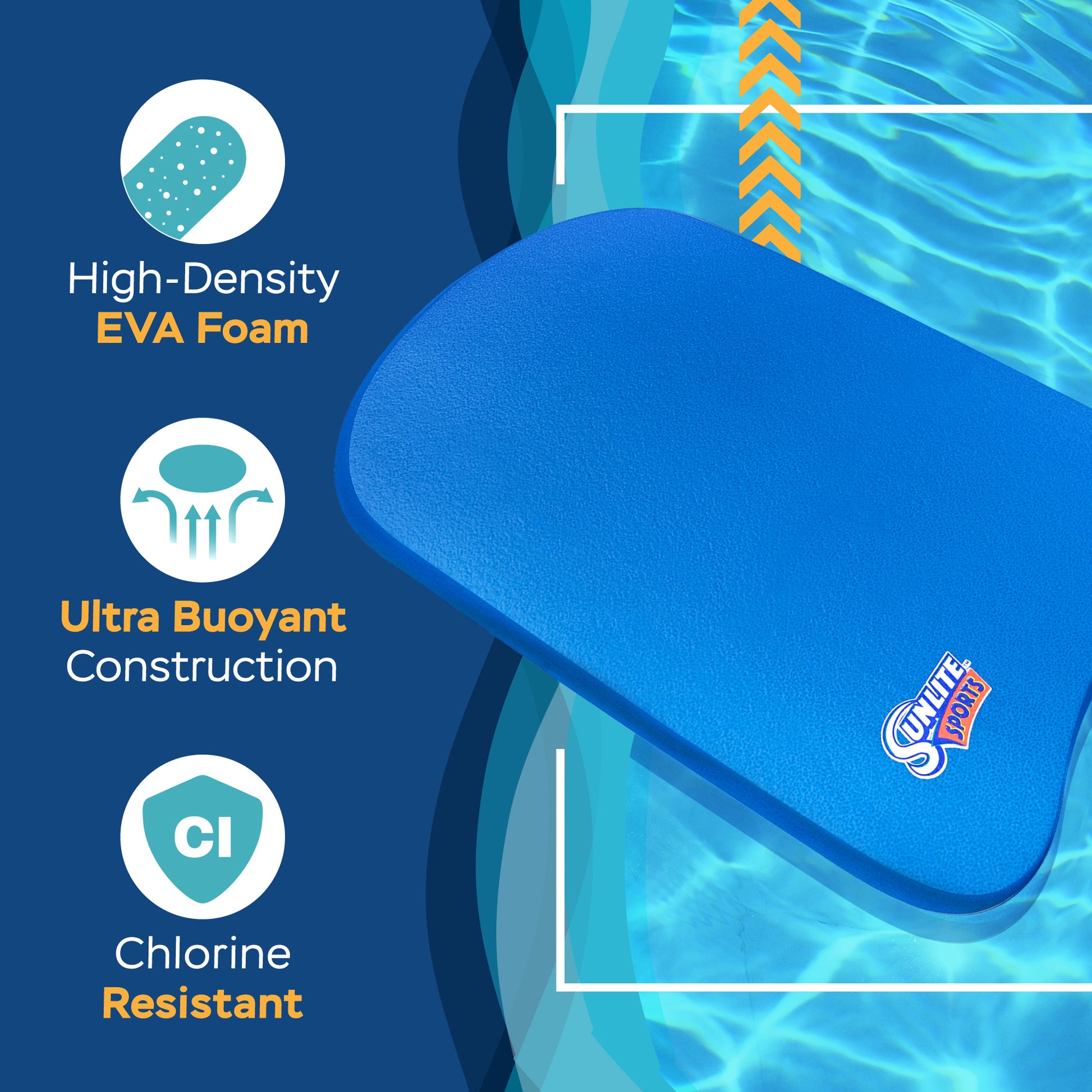 - HIGH-QUALITY MATERIAL - Made of premium EVA compressed foam, the Sunlite Sports Swimming Kickboard is built with remarkable durability that is long-lasting. Play wholeheartedly using our kickboard without any worries.