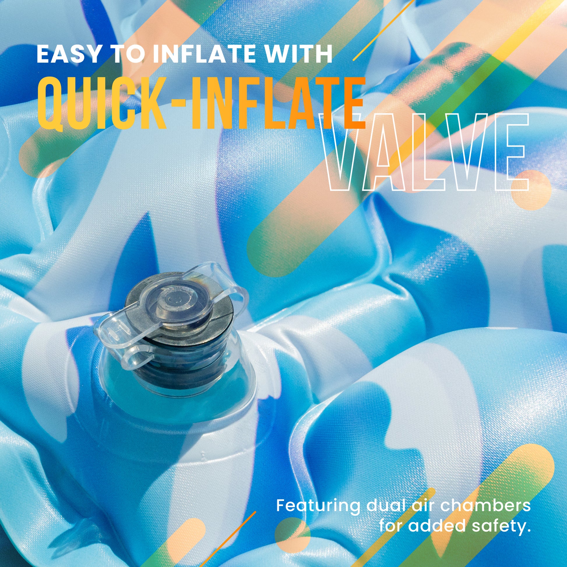 - EASY TO INFLATE - Featuring a Quick-Inflate valve and dual air chambers for added safety. An air pump (not included) is required to inflate the Giant Water Mattress.
