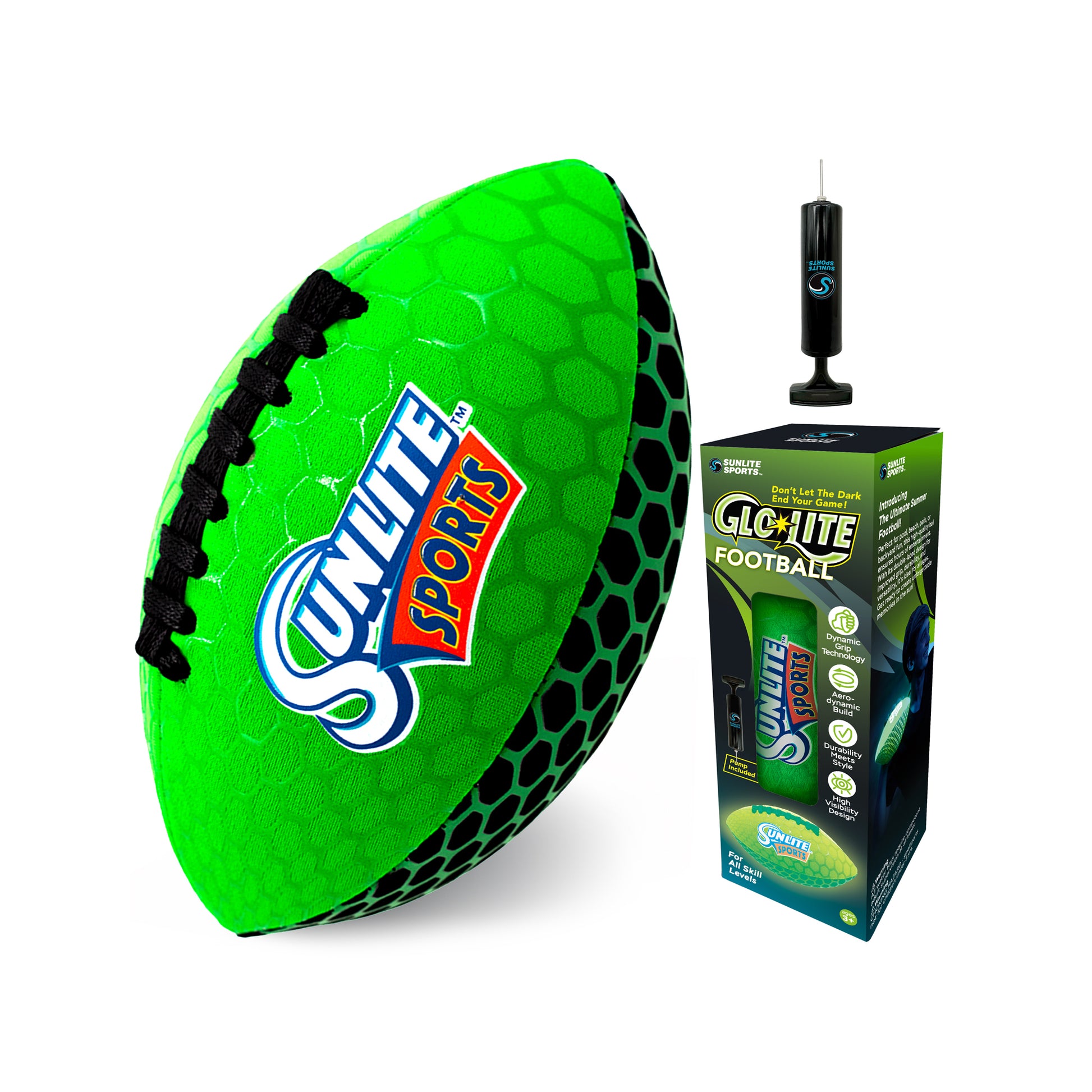 - GLOW IN THE DARK - Covered in a special coating, this football glows in the dark. PLEASE NOTE: Like a solar battery, this football must be “charged” with UV light for several hours in order to properly glow.