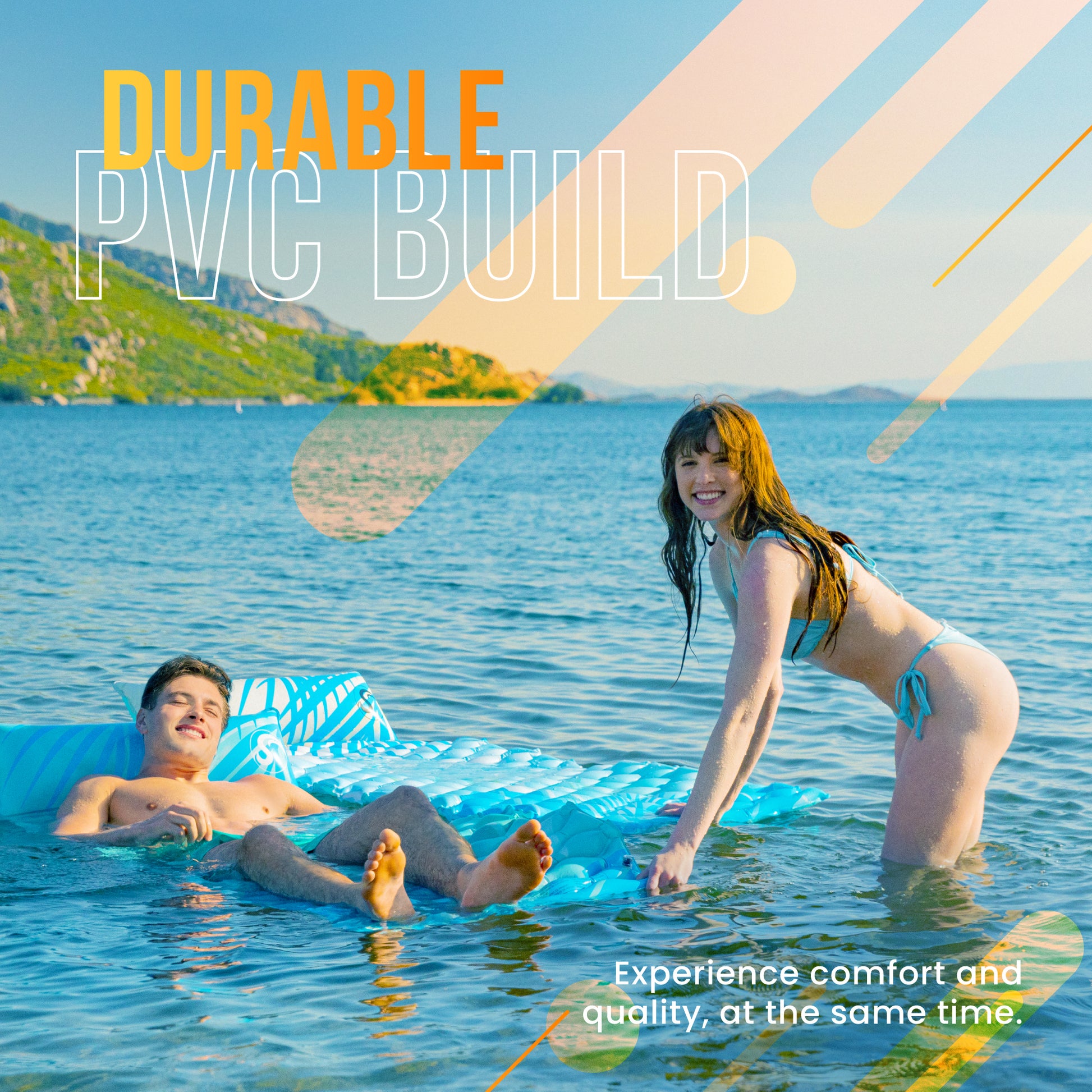 - ULTIMATE COMFORT - Featuring soft and bouncy cushioning and a built-in pillow, the Sunlite Sports Water Mattress is perfect for lounging in the water and soaking up the sun.