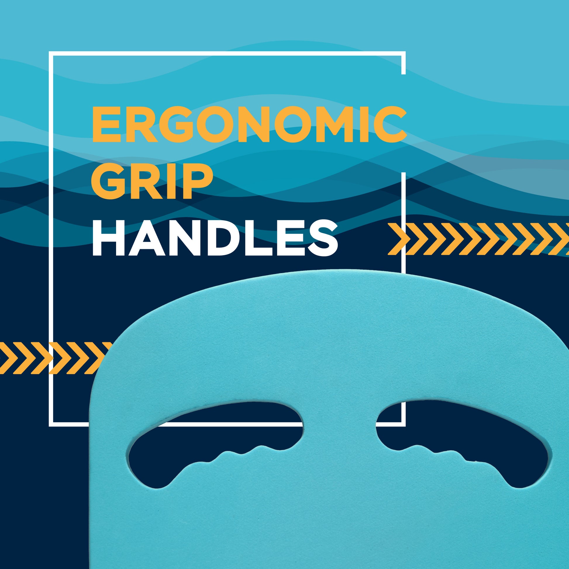 - ERGONOMIC GRIP HANDLES - Featuring two ergonomic grip handle cutouts with grooves for your fingers, this kickboard allows you to hold it with perfect form and master your swimming technique.