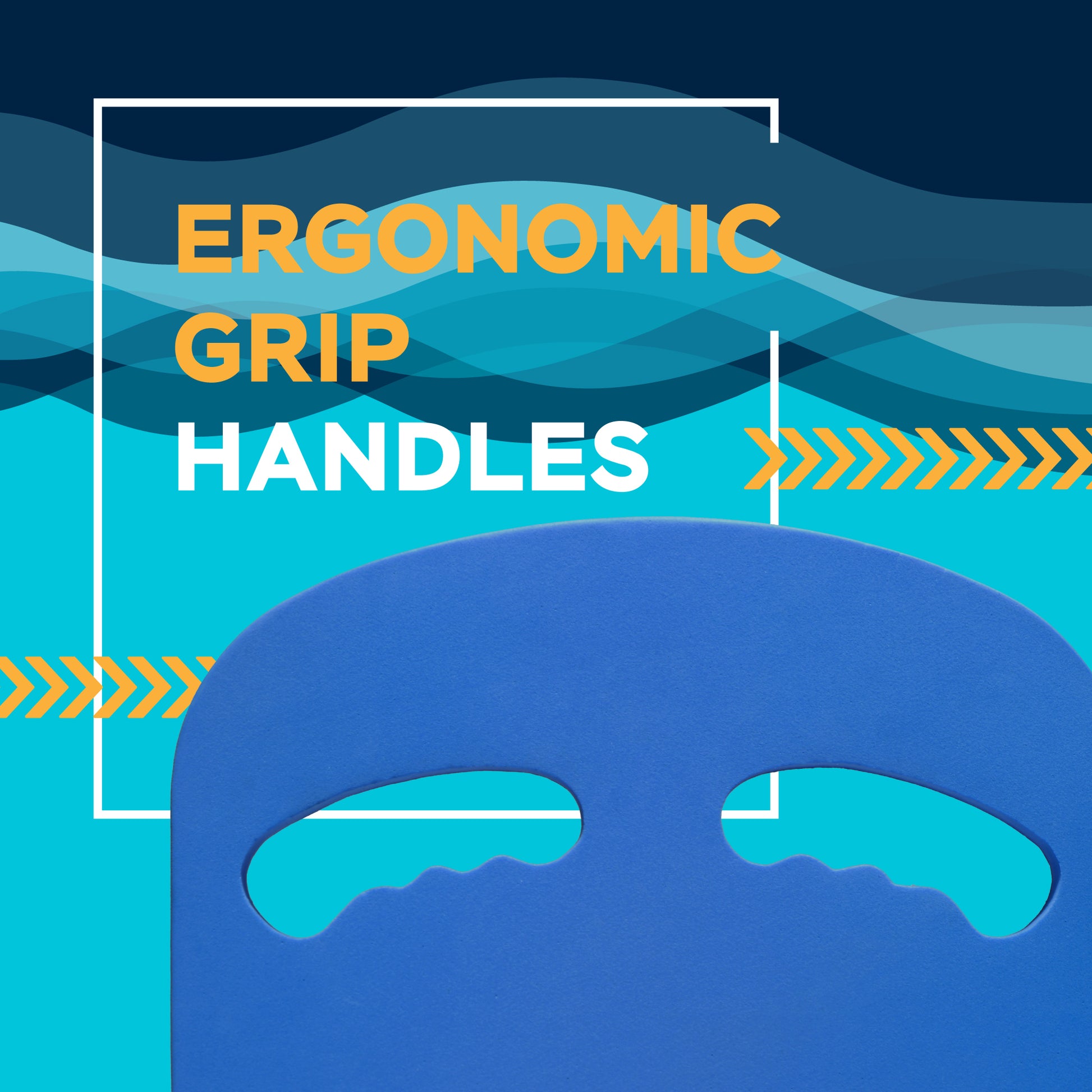 - ERGONOMIC GRIP HANDLES - Featuring two ergonomic grip handle cutouts with grooves for your fingers, this kickboard allows you to hold it with perfect form and master your swimming technique.