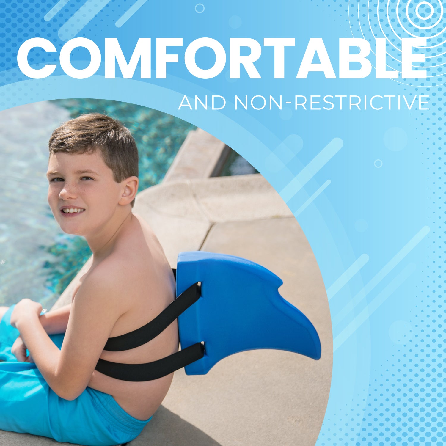 - 🏝️COMFORTABLE AND NON-RESTRICTIVE - The Shark Fin Float was designed with comfort in mind. Along with having the perfect fit, the Back Float will not restrict any swimming movements and gives your child the ultimate range of motion.
