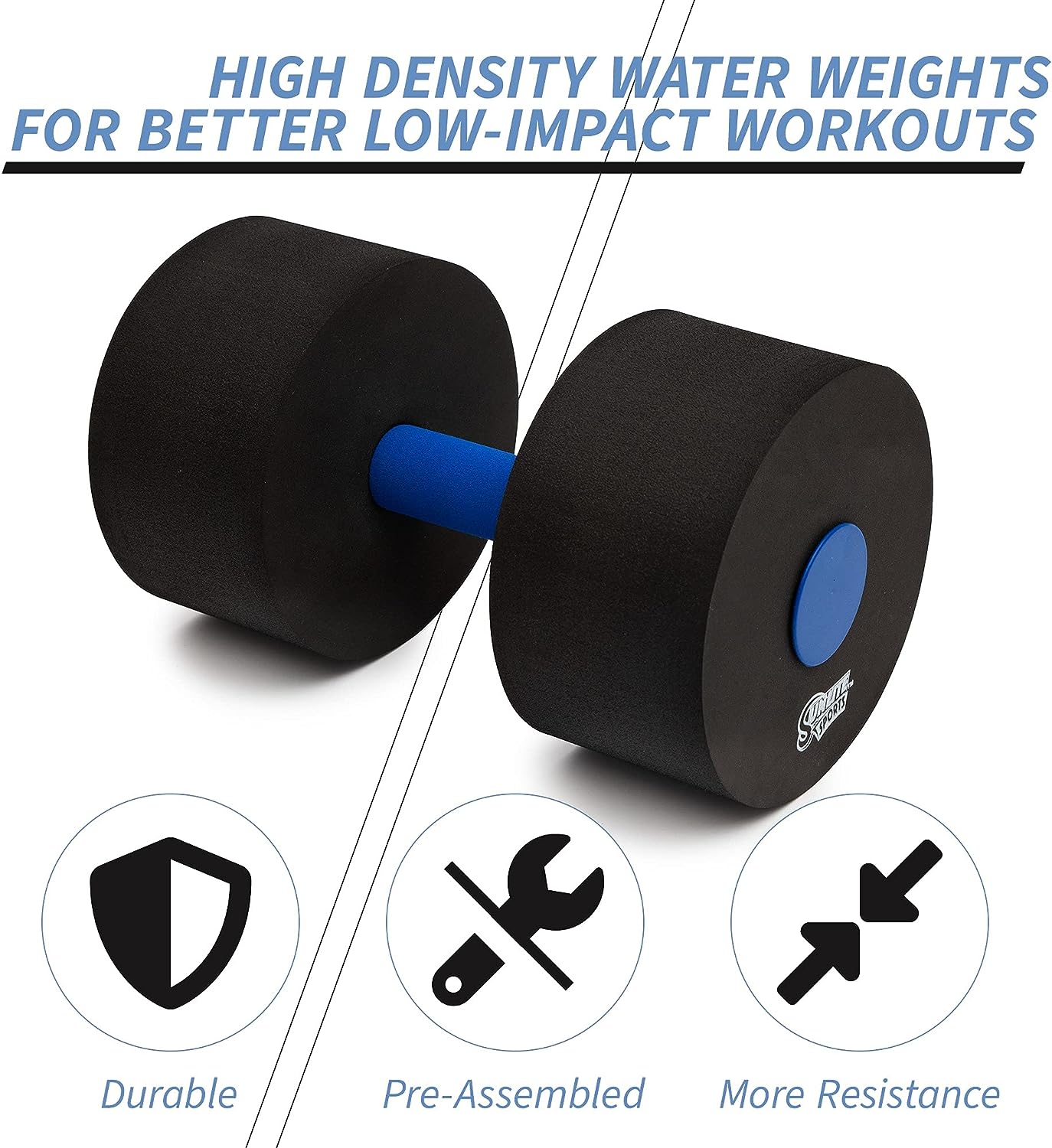 - LIGHTWEIGHT AND PORTABLE: The dumbbells are easy to carry to and from your water workout location; they are also easy to grip, with handles made of sturdy plastic reinforced with a foam cushion