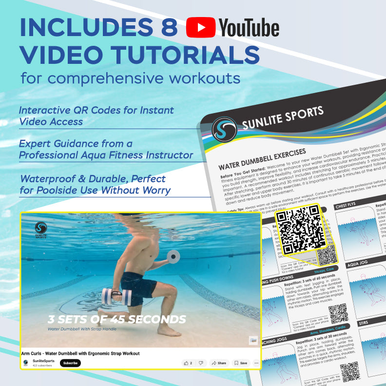 - INSTRUCTIONAL TUTORIAL VIDEOS: Comes with a waterproof exercise manual featuring 8 exercises, each with scannable YouTube videos; the workouts are written and recorded by a former Olympic swimmer, helping you master your form