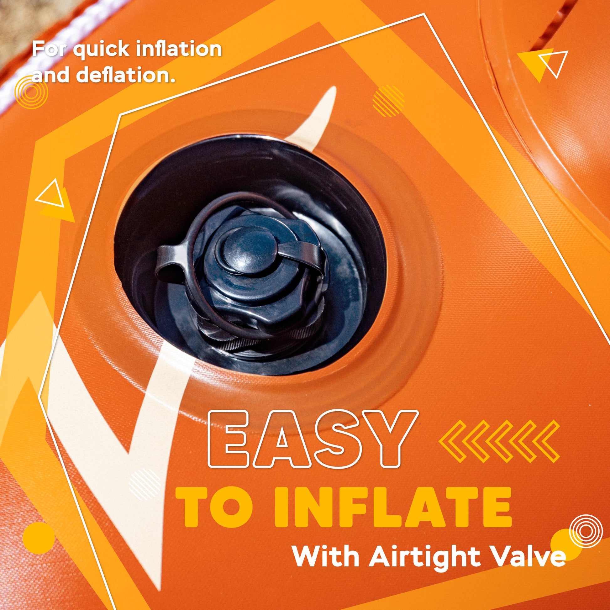 - OUTDOOR FUN - Kick back on Peter for the ultimate summer relaxation. Take a seat, enjoy the breeze, and relish the feeling of your feet dipping in the cold water. For recreational use only. This River Tube has a 49 Inch diameter when inflated.