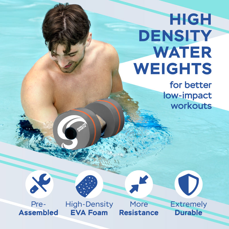 - HIGH-DENSITY EVA FOAM: Constructed from premium high-density EVA foam; these water dumbbells are chlorine-resistant and dry quickly between uses; built to last, they will not deteriorate over time